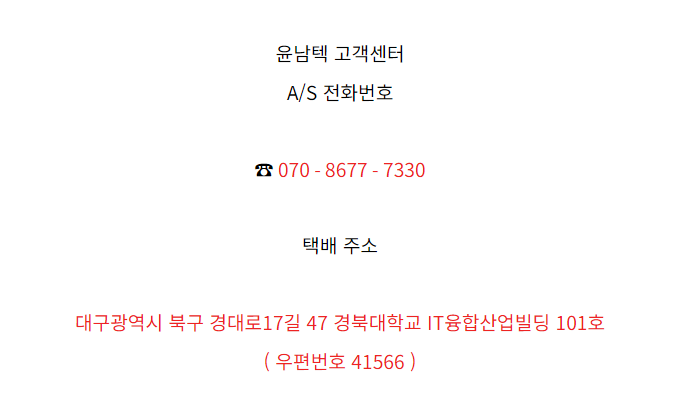 윤남텍 가습기 AS 번호/ 고객센터 정보/ 고객센터 전화번호