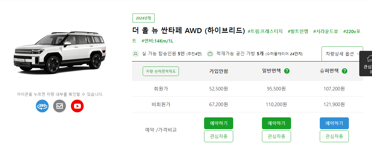 기존에 타보고 싶었던 패밀리카. 산타페로 알아보자.