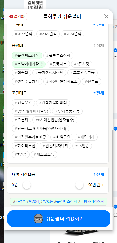 쉬운 필터 적용하기라는 창이 있어서 손쉽게 검색할수 있다.